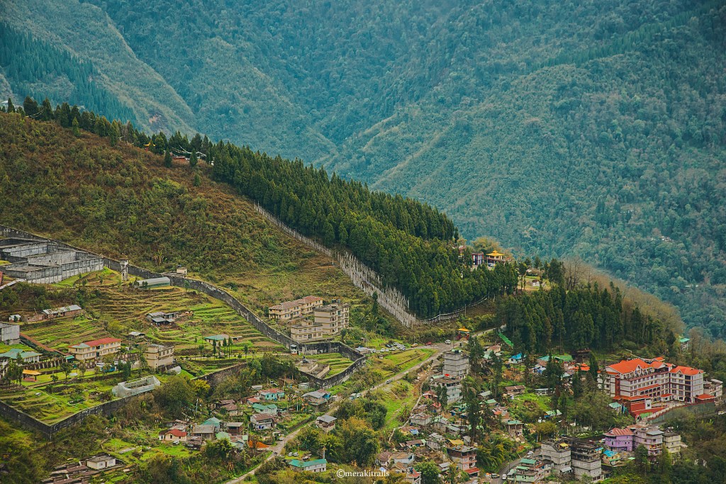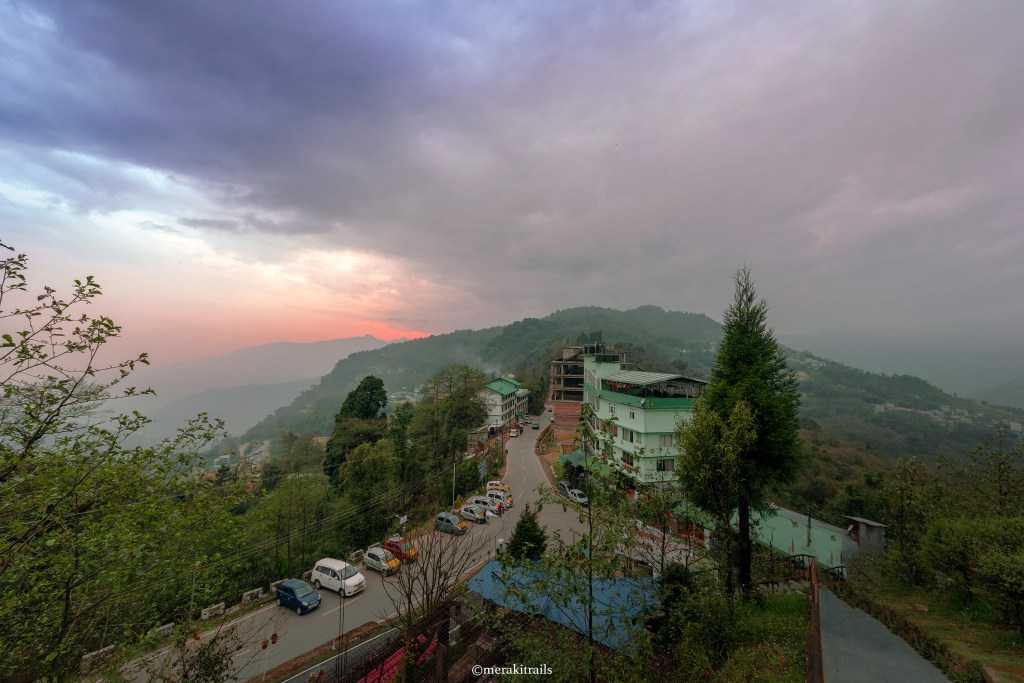 I was truly blessed to see the fiery red sky welcoming us. By 7:45pm we were at our hotel, got freshened up and went out for dining. Had some delicious chicken momos and fried rice at a local cafe nearby followed by ice-cream for dessert. We hit the road by 7:00 am on day 2 to travel towards Sikkim and enjoyed the beautiful scenarios on our way. It was so calm and cold with this sparkling and green Teesta River flowing alongside. Reached Sikkim at around 3:00pm and checked into the hotel “VajraKila”. The room was quite spacious with an attached panoramic view gallery.