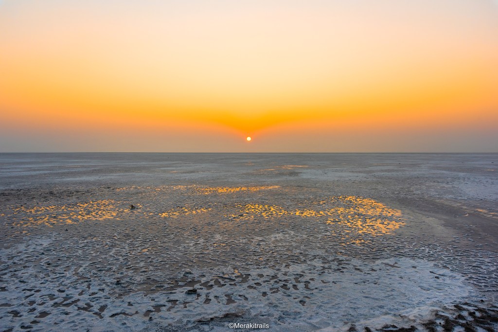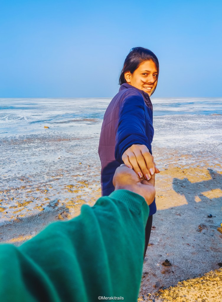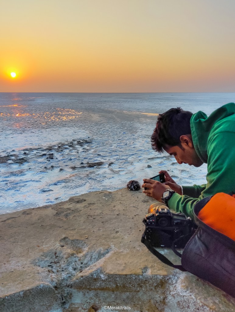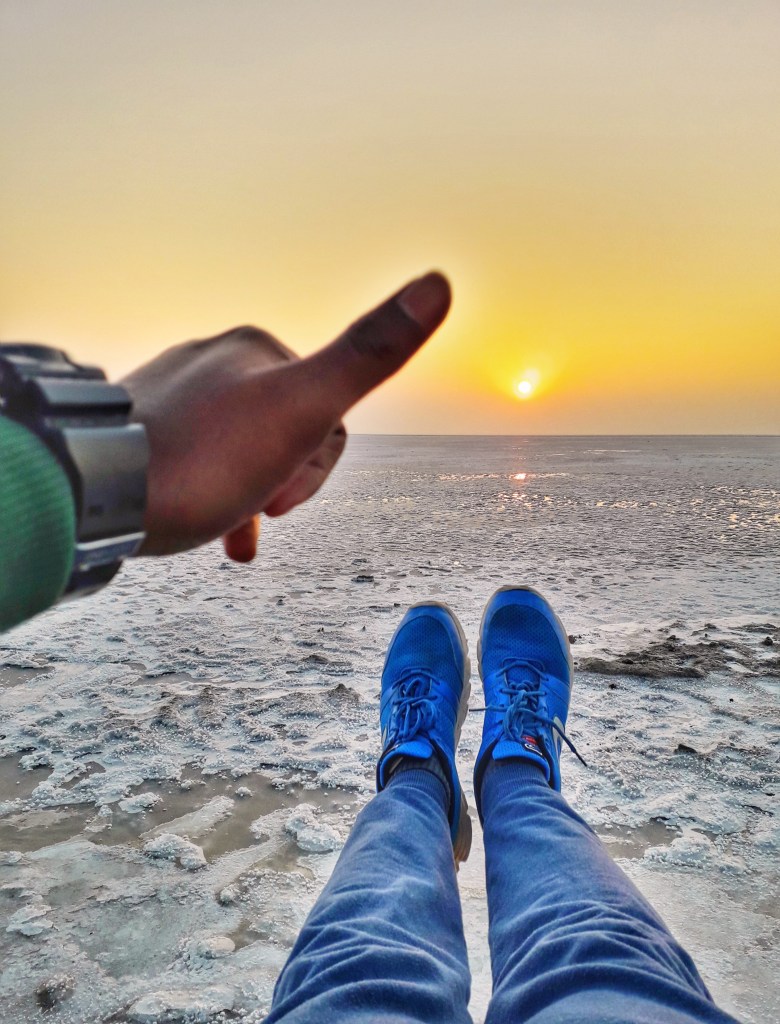 Next day morning we left at 6:00 am to visit the exotic mighty White sand Desert. Army officials verified our ID proof and we entered this beautiful land. Parked our car by the roadside and waited for the sunrise, to watch this white field glowing and sparkling in all its magic. As this yellow dwarf star emerges, this infinity land sparkles around. What a feeling it was, the infinite white land, the sunrise and we, a moment which will be cherished for lifetime.We then had some tea and climbed up the WatchTower from where we enjoyed the bird’s eye view. Clicked pictures and engaged our hearts with this beautiful nature. Then we stepped inside the salt desert and decided to do a fun dance video on Bala song.